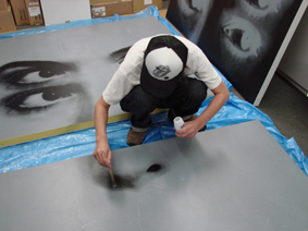 展覧会の仕上げの風景。